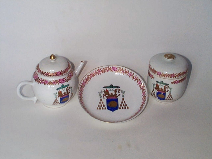 Théière, assiette creuse, sucrier : vue généraleImmatriculation