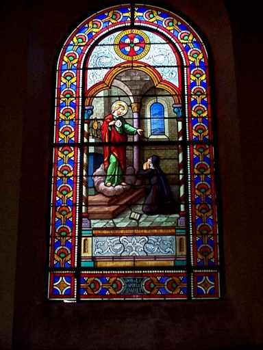 Verrière de la baie 1 (verrière historiée) : Apparition du Sacré Coeur à Marguerite-Marie Alacoque,