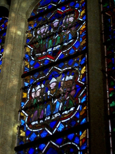 Verrière de la baie 100 (verrière légendaire) : Jugement dernier, Vie du Christ, Histoire d'Abraham, Vie de sainte Catherine, Vie de sainte Marguerite, évocation des évêques de Dol,