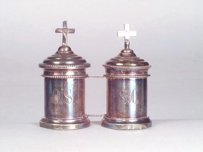 Ampoule à saint Chrême, coffret aux saintes huiles,