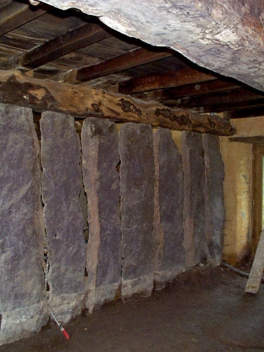 Cloison en palis de schiste servant à séparer le logis de l'étable dans uen ancienne ferme rénovée.Immatriculation