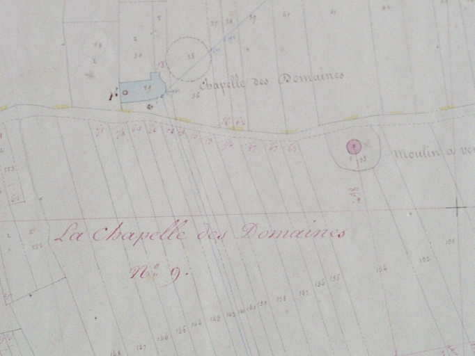Domaines(les) : la chapelle et sa croix de placître sur le cadastre de 1830Immatriculation