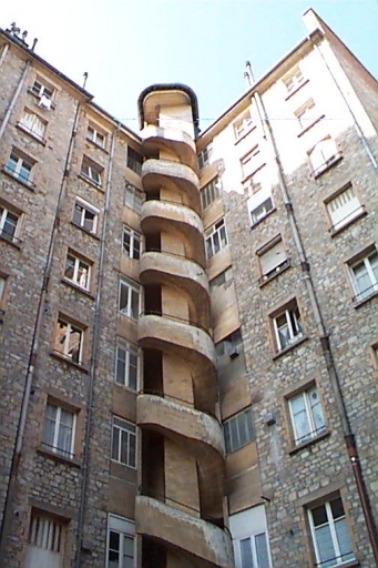 Détail de la cage d'escalier, vue depuis la courImmatriculation