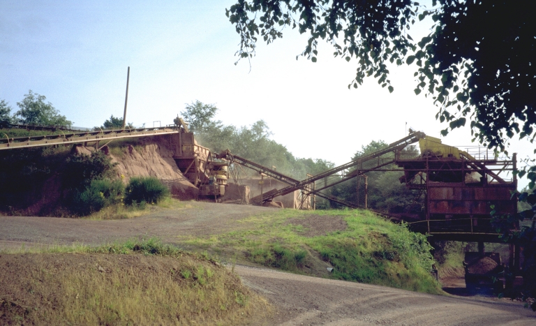 Vue générale sud : équipement de traitement des matériaux extraits.Immatriculation