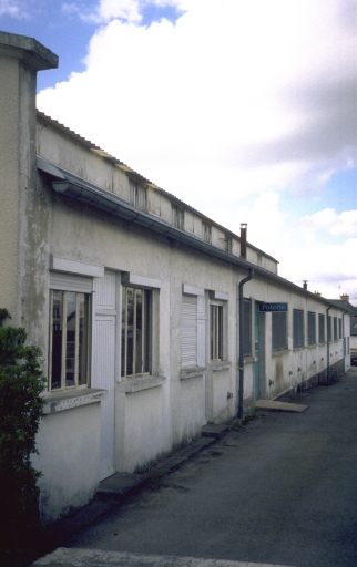 Atelier de fabrication, façade latérale est. Le bâtiment est couvert d'un large lanterneau.Immatriculation