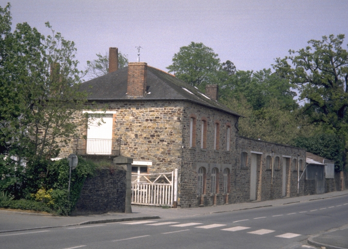 Vue générale ouest du site. Le logement patronal, à gauche, est flanqué d'une partie de l'atelier de fabrication.Immatriculation