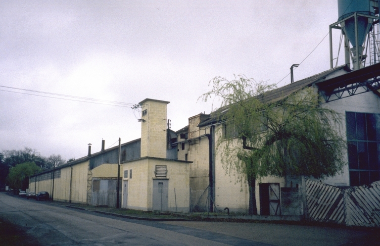 Vue d'ensemble sud-ouest : chaufferie, transformateur et atelier de fabrication au fondImmatriculation