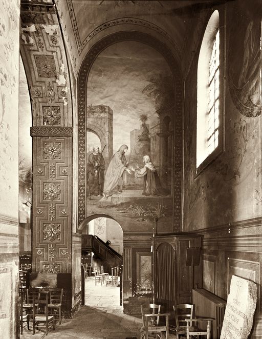 Chapelle, vue du bas-côté nord prise vers l'ouest , vers 1960. Collection particulière.Immatriculation