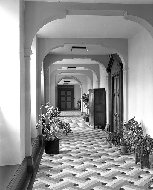 Intérieur : couloir principal ouest, vue générale.Immatriculation