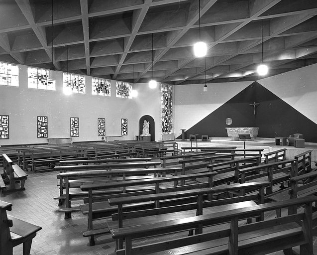 Chapelle moderne (détruite en 1998) : vue générale intérieure.Immatriculation