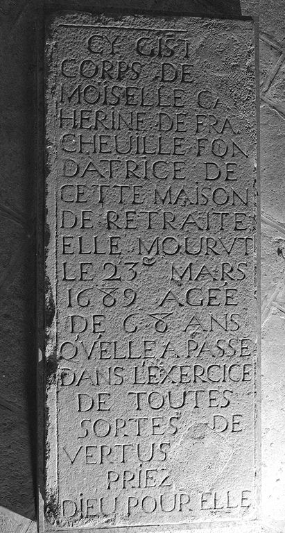 Chapelle moderne : crypte, pierre tombale de Catherine de Francheville.Immatriculation