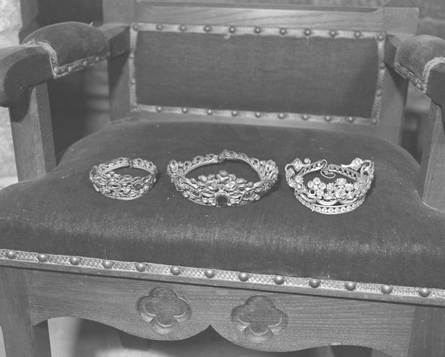 Statue de Vierge à l'enfant : trois couronnes.Immatriculation