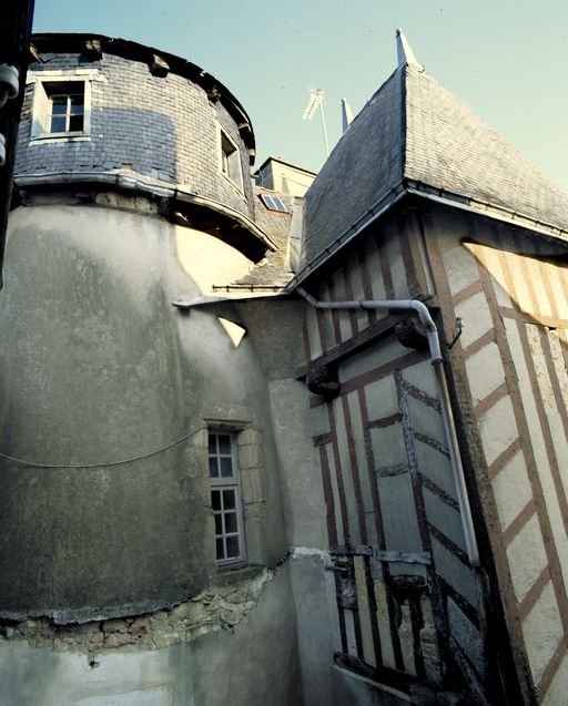 Cour sud : détail de la partie haute de la tour et du pavillon.Immatriculation