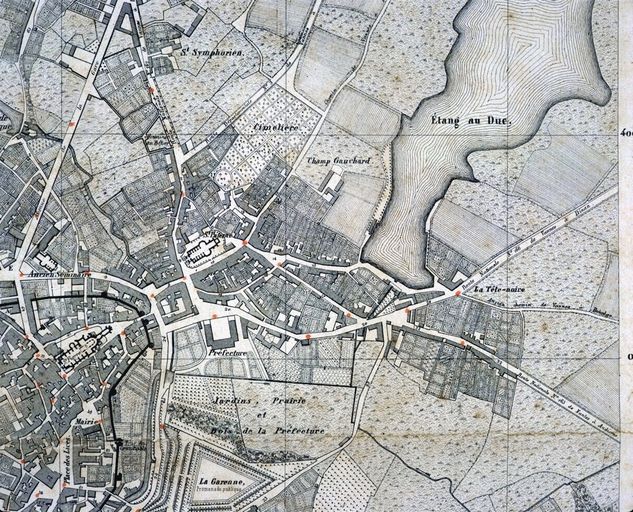 Plan de la ville et des environs de Vannes, par Bassac, 1869, partie est. AM Vannes 9Fi.Immatriculation