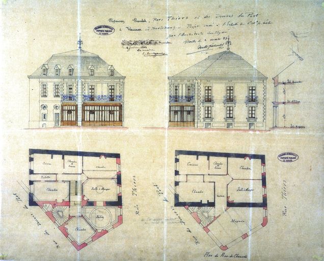 Plans et élévations, par Mathurin Fraboulet, 2 mars1883. AM Vannes.Immatriculation