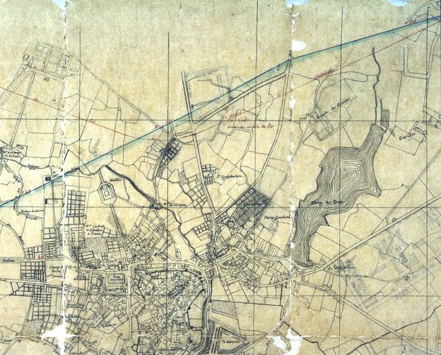 Ville de Vannes. Plan de délimitation de l'octroi par Marius Charier, 1874 : partie nord de la ville. AM Vannes 21 Fi.Immatriculation
