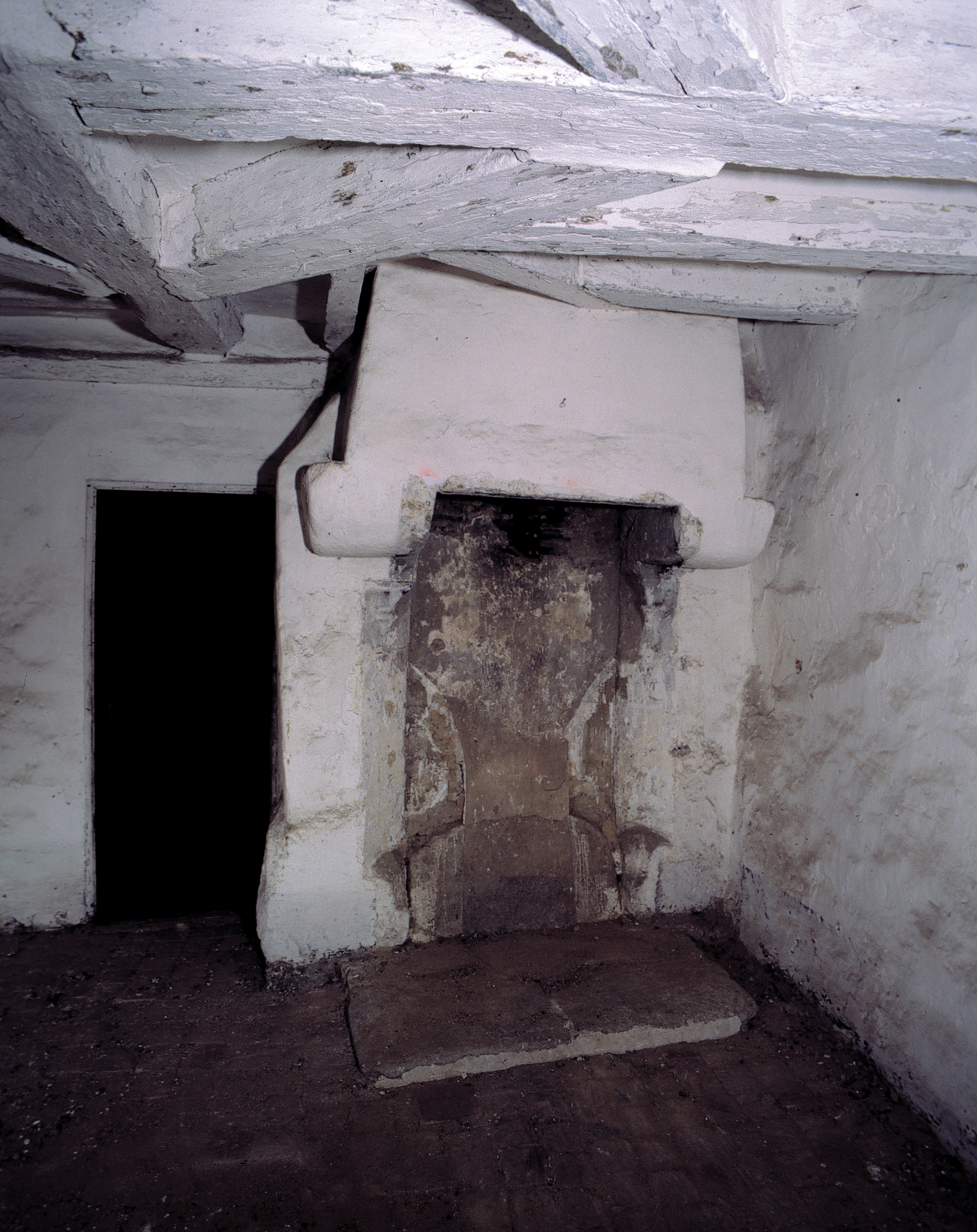 Chambre haute de la tour, cheminée et porte nord.Immatriculation