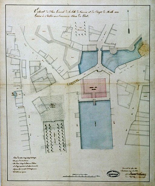 Extrait du...projet de halle à grains à établir sur l'ancienne écluse de Vannes, par Brunet-Debaines, 1826. AM Vannes 9 Fi.Immatriculation