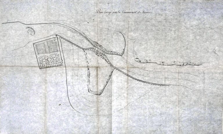 Fonds de l'Intendance. Plan (de la Santière et d'un projet concernant l'aménagement de la butte de Kérino) envoyé par la communauté de Vannes, 4e quart 18e siècle. AD Ille-et-Vilaine C704/21.Immatriculation