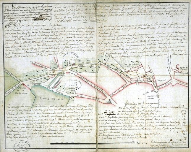 Fonds de l'Intendance. Plan des issues de la ville de Vannes pour communiquer avec les routes de Vannes à Rennes, à Malestroit et à Redon et de Vannes avec la route de Nantes. Plan par Chambon de Beauvalet, 1759. AD Ille-et-Vilaine C 704/15.Immatriculation
