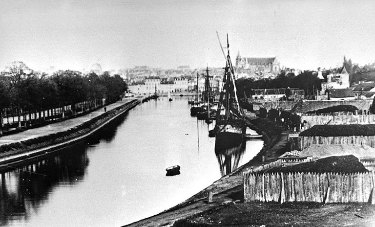 Vue du port et de la ville prise du sud, 1879. Photographie ancienne. AD Morbihan.Immatriculation