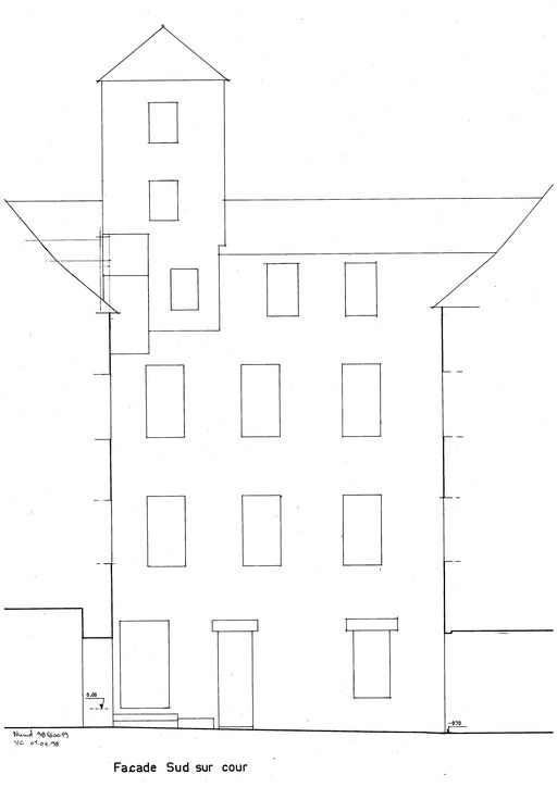 Elévation sud sur cour, relevé schématique.Immatriculation
