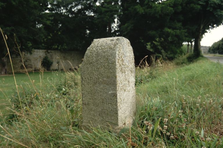 Borne kilométrique avec inscription NapoléonvilleImmatriculation