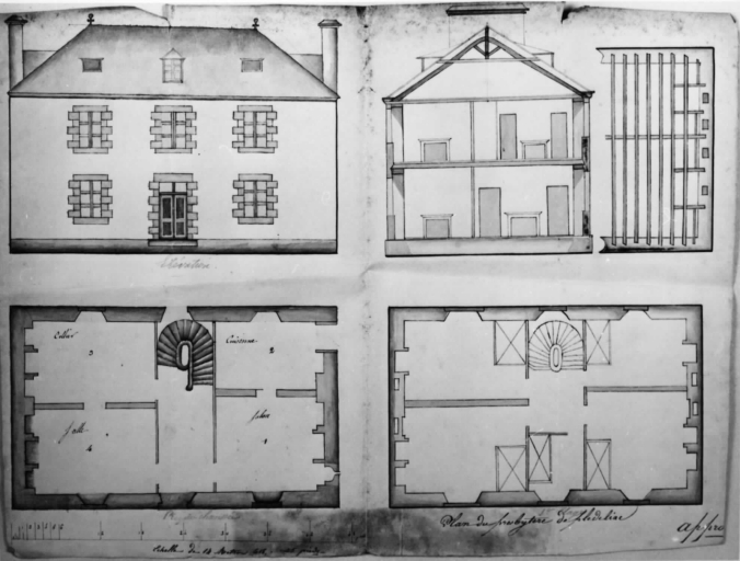 Repro. Plans, coupe et élévation par Guernion, 1837Immatriculation