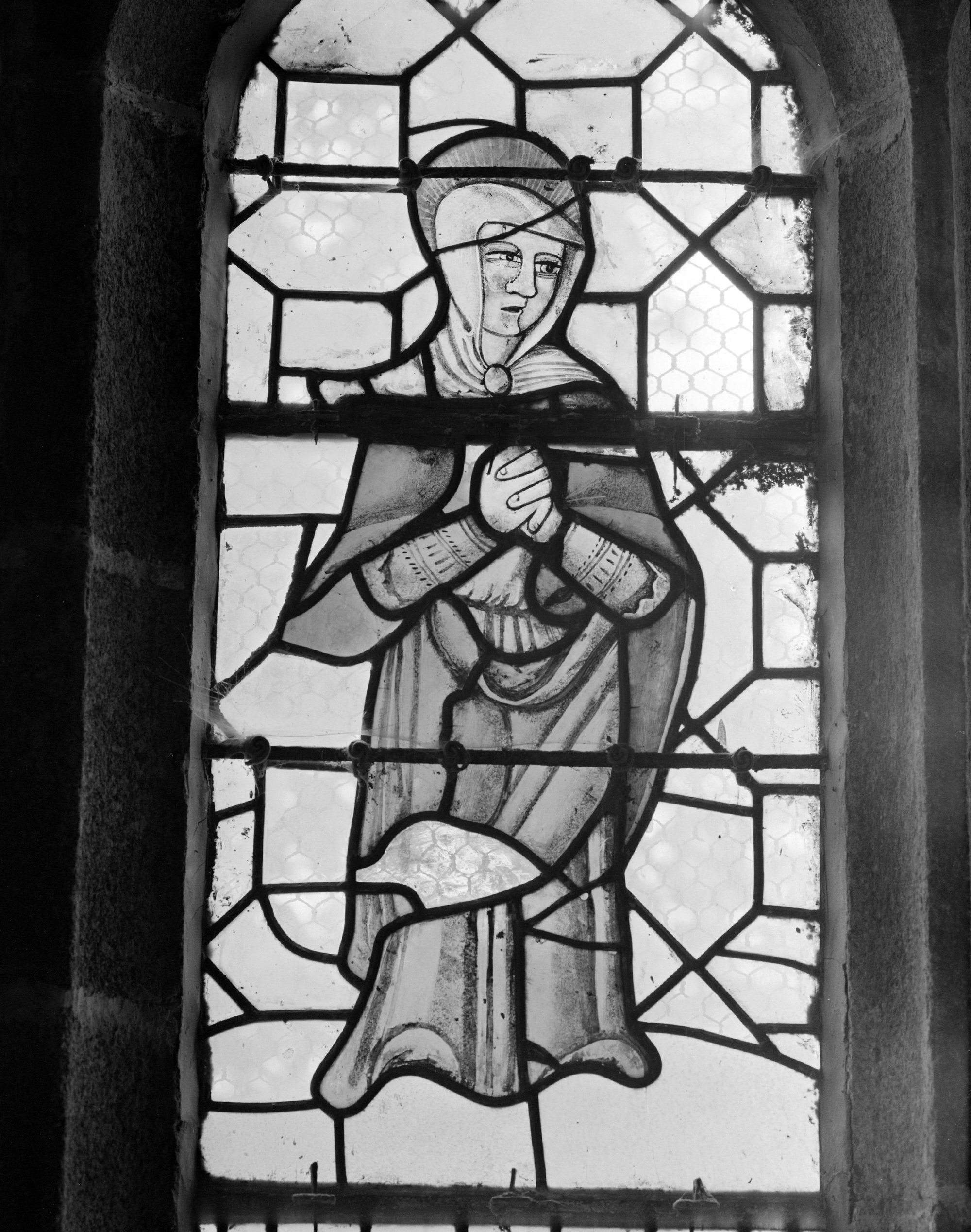 Ploubezre, chapelle de Kerfons : vue intérieure, détail de la verrièreImmatriculation