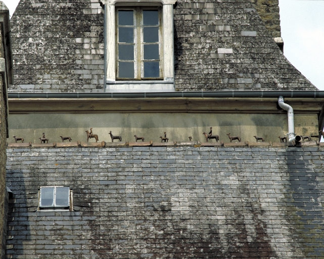Détail du faîtage de l'aile ouest : chasse à courreImmatriculation