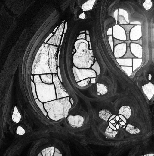 Plounévez-Moëdec, Keramanac'h : chapelle de Keramanac'h, baie 2, tympan, détail d'un angeImmatriculation