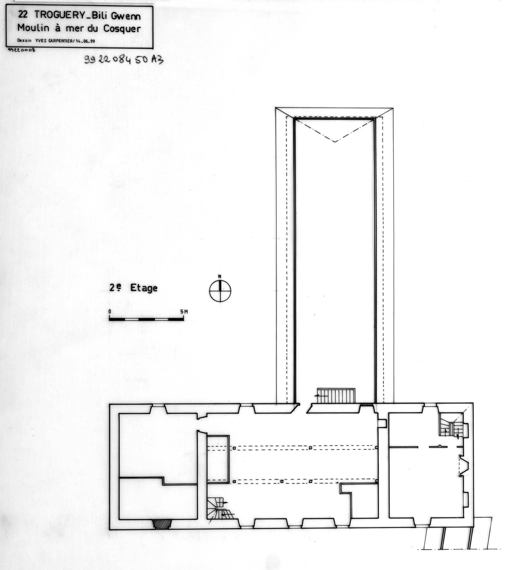 Plan au sol du deuxième étage du moulin et du magasin à grainsImmatriculation