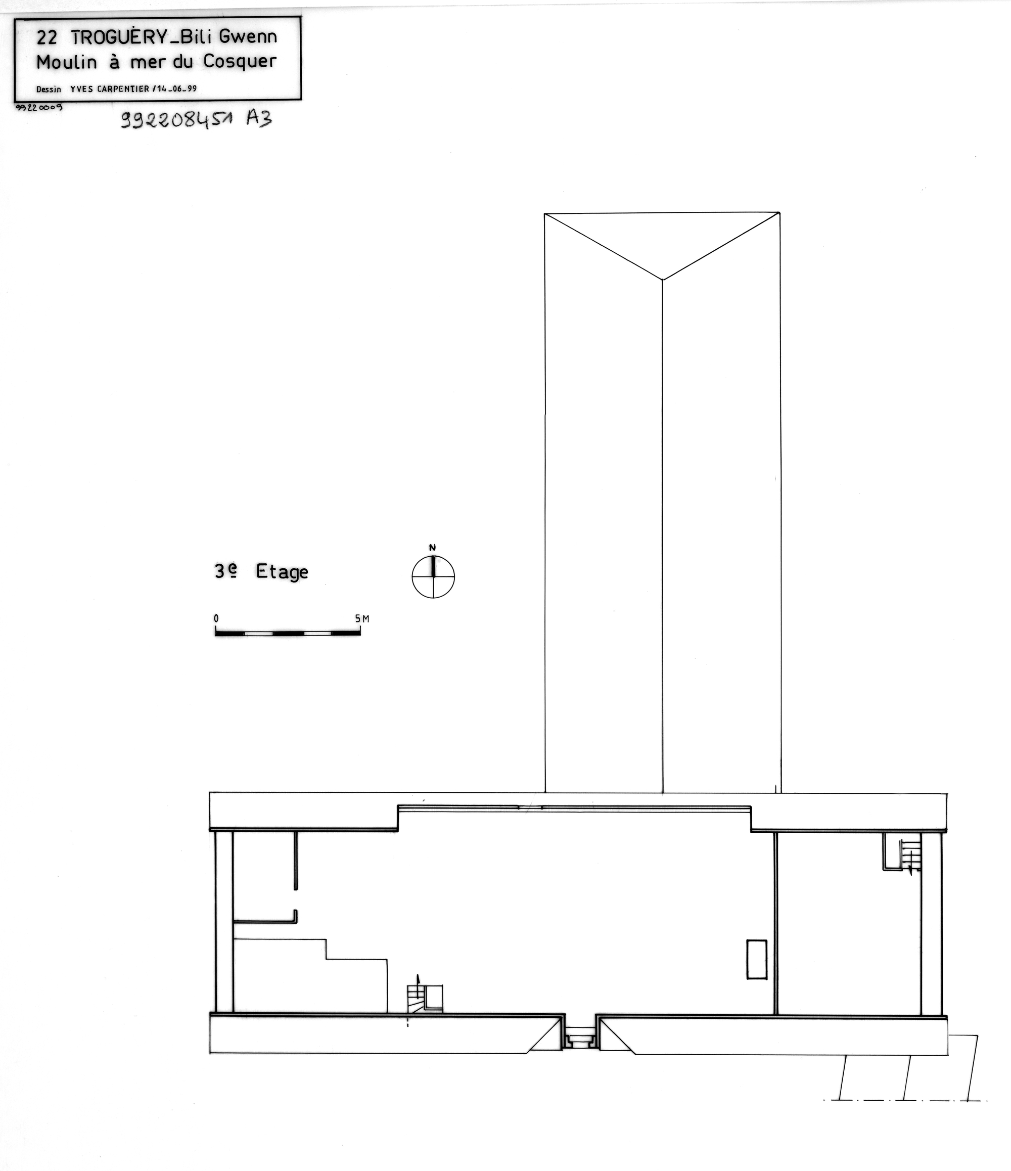 Plan au sol du troisième étage du moulin et du magasin à grainsImmatriculation