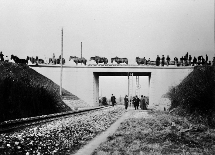 Hospices civils de Rennes, le pont enjambant la voie ferrée en construction, photographie, début 20e siècle (A. C. Rennes M 106).Immatriculation