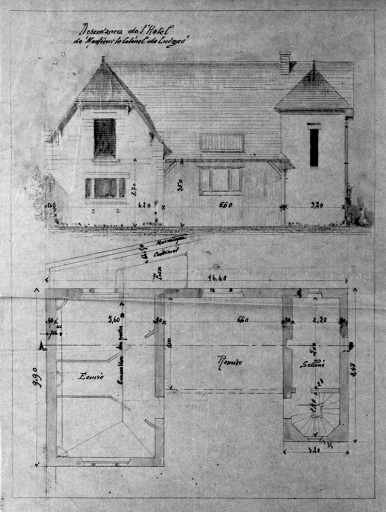 Plan et élévation des communs, dessin (A. C. Rennes).Immatriculation