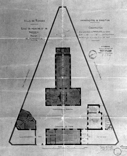 École de Médecine et de pharmacie. Projet de transformation. Construction d'un laboratoire de physiologie. Dessin, par Jean-Baptiste Martenot, 1886 (A.C.Rennes)Immatriculation