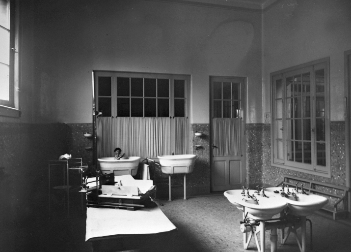 La crèche Alain Bouchart, vue de la salle de bain. Photographie par Auguste Lecouturier, 1er quart 20e siècle. (A.D. Ille-et-Vilaine)Immatriculation