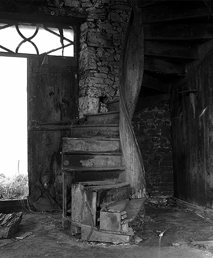 La Ville Hervé : bel escalier tournant en bois du 2e quart 19e siècle dans une maison en ruinesImmatriculation