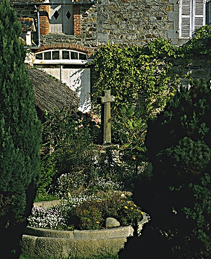Croix en granite dans un jardin privéImmatriculation