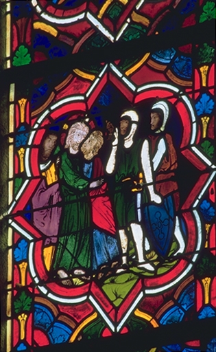 Verrière de la baie 100 (verrière légendaire) : Jugement dernier, Vie du Christ, Histoire d'Abraham, Vie de sainte Catherine, Vie de sainte Marguerite, évocation des évêques de Dol,