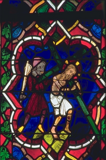 Verrière de la baie 100 (verrière légendaire) : Jugement dernier, Vie du Christ, Histoire d'Abraham, Vie de sainte Catherine, Vie de sainte Marguerite, évocation des évêques de Dol,
