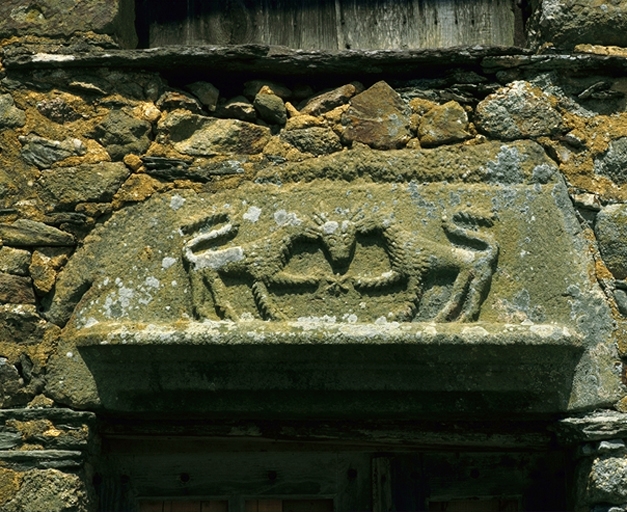 Linteau sculpté : exemple exceptionnel sur la commune.Immatriculation