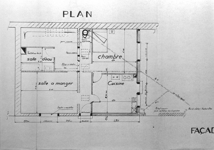 Maison pour M. Quimbrot. Plan du rez-de-chaussée, dessin, 1908 (A. C. Rennes)Immatriculation