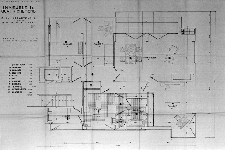 Immeuble, quai de Richemont. Plan type OUEST, plan d'exécution (A. C. Rennes)Immatriculation
