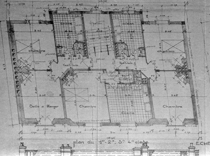 Immeuble, rue de Dinan. Plan des étages, dessin (A. C. Rennes)Immatriculation