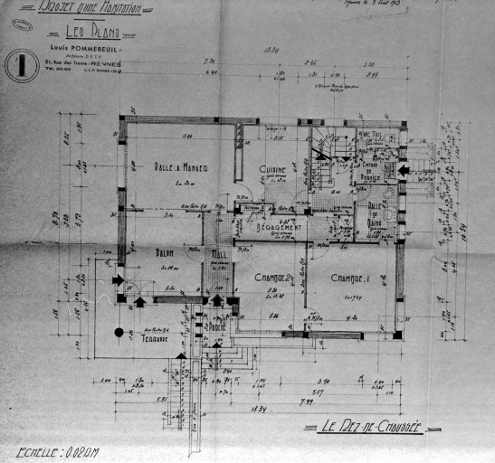 Maison, rue de Dinan, plan du rez-de-chaussée, dessin, par Louis Pommereuil (A. C. Rennes)Immatriculation