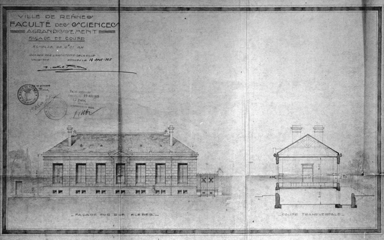 Faculté de sciences, actuellement faculté dentaire et Inspection académique, place Pasteur ; 1 quai Dujardin (Rennes),