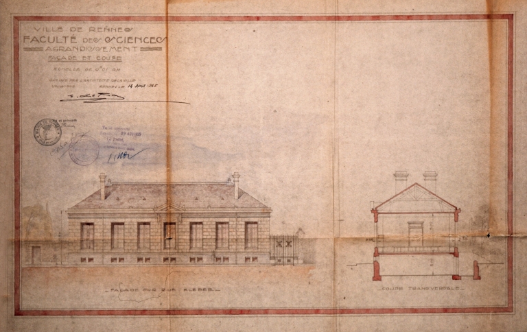 Faculté de sciences, actuellement faculté dentaire et Inspection académique, place Pasteur ; 1 quai Dujardin (Rennes),