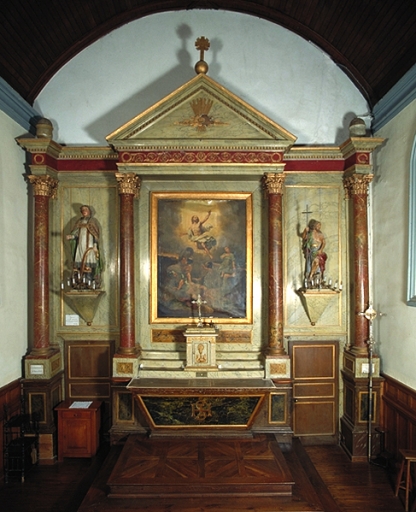 Ensemble du maître-autel (2 degrés, autel, retable, tabernacle, 3 gradins),