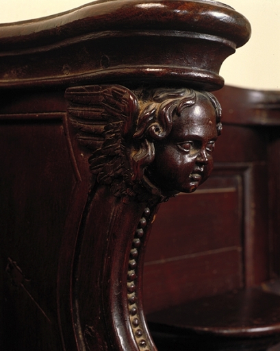 Détails d'une tête d'angelot sur une jouéeImmatriculation